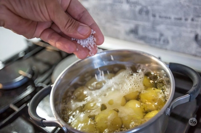 Если хотите, чтобы картофель сохранил форму и был целым, солите в начале варки. Соль замедлит размягчение и поможет удержать структуру клубней.