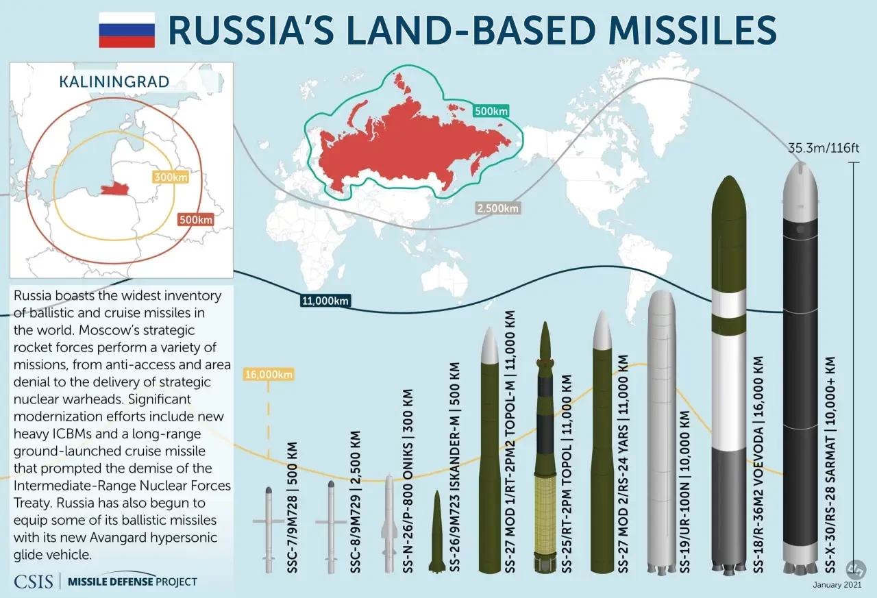 Для реализации программы модернизации МБР Россия, как считают американские эксперты, расширяет мощности по производству твердотопливных двигателей (Hinz 2024). После того как мобильная МБР РС-12М «Тополь» (SS-25) была снята с активной эксплуатации в 2023 году, эксперты оценивают, что последней оставшейся активной МБР советской эпохи в российском арсенале является шахтная SS-18. (Некоторые устаревшие SS-19, 12 единиц УР-100Н УТТХ, были переоборудованы для установки гиперзвукового планирующего блока «Авангард».)