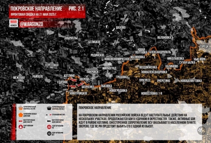 ВС РФ ведут ожесточённые бои в районе Удачного и Богдановки на Покровском направлении: свежие данные на 21.05.2025