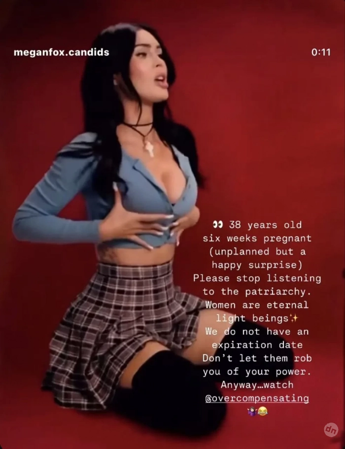 Меган Фокс"Здесь мне 38 лет, и я на шестой неделе беременности (незапланированный, но приятный сюрприз). Пожалуйста, перестаньте верить патриархату. Женщины — существа вечного света. У нас нет срока годности. Не позволяйте им отнимать у вас вашу силу", — написала она, вероятно, имея в виду мужчин.