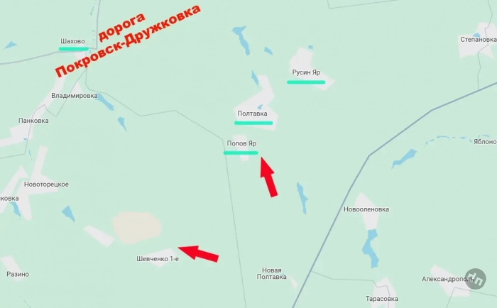 ВС РФ вышли к линии Попов Яр - Полтавка - Русин Яр, за которой - автодорога Покровск-Дружковка-Краматорск