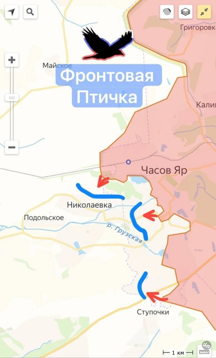 "В настоящий момент серьёзное продвижение наших бойцов фиксируется со стороны Часова Яра - непосредственно населенного пункта Ступочки, который, по факту, переходит в локацию Константиновки", - сообщил офицер в отставке.