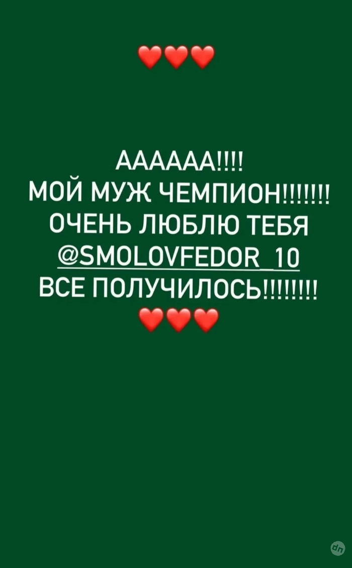 Напомним, что одним из игроков “Краснодара” является Федор Смолов. Он уже опубликовал в соцсетях фото с золотой медалью. А его жена Карина Истомина публично поздравила его: “Мой муж — чемпион! Очень люблю тебя! Все получилось!”.