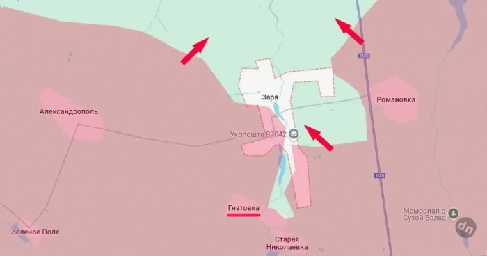 К вечеру 25 мая поступают сообщения об освобождении Игнатовки (Гнатовки) и взятии под контроль значительной части упомянутой Зари. Это свидетельствует о том, что один из основных рубежей обороны ВСУ на стыке двух направлений обрушился и что в ближайшее время состоится выравнивание фронта по линии Романовка-Заря-Александрополь-Новая Полтавка.