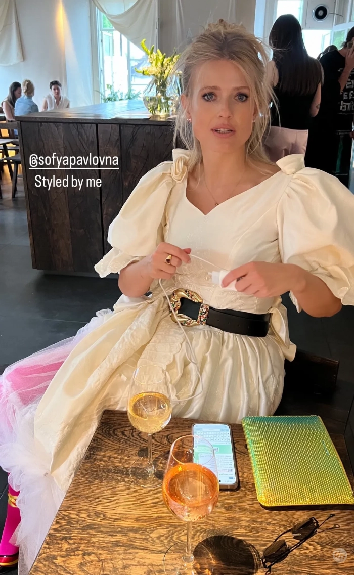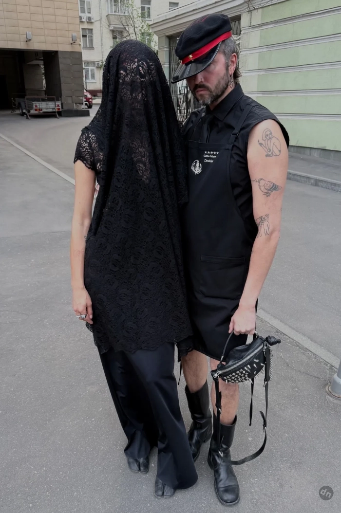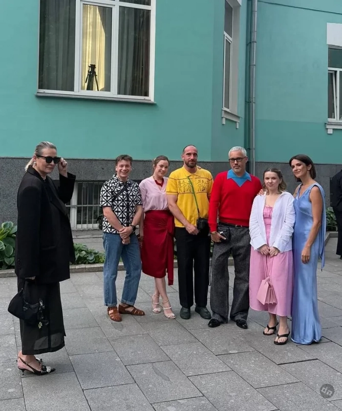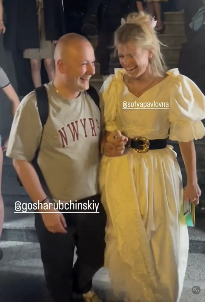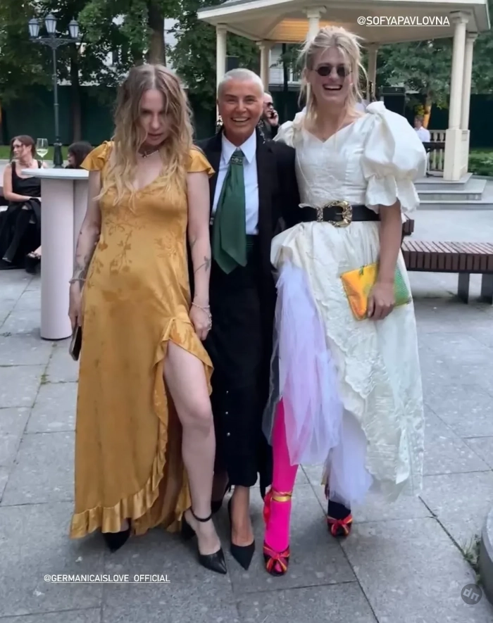 Ксения Собчак и Гоша РубчинскийАлёна Долецкая, Виктория Шелягова, Софья Эрнст, Авдотья Александрова, Гоша РубчинскийСофья Эрнст, Ксения Собчак и Олег МеньшиковСофья Эрнст, Ксения СобчакДресс-код для гостей был total black, но соблюсти его решили не все. Софья Эрнст пришла в белом свадебном платье и розовых колготках, отметив, что когда она выходила замуж за Константина Эрнста, у них была только регистрация в ЗАГСе, без платья, поэтому она решила "забрать своё". Ксения Собчак тоже пришла в белом прозрачном платье в горошек, а Гоша Рубчинский позировал с гостями в серой футболке и с рюкзаком. Валерия Гай Германика надела золотое платье с рюшами, а Ксения Шипилова — серый брючный костюм.