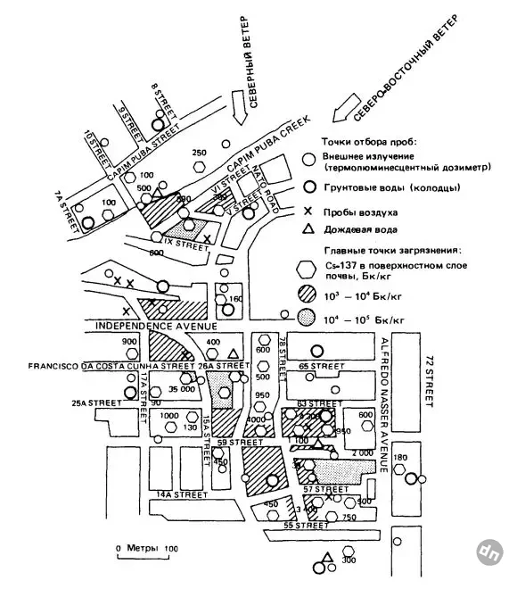 Ряд дозиметрических измерений домов, где проживали пострадавшие, а также публичных мест (улиц и пр.) показал, что основное загрязнение солью цезия-137 хоть и является локальным и охватывает площадь около одного квадратного километра, но радиоактивная пыль разнесена на несколько кварталов. Соответственно, логично было предположить, что и людей с внутренним облучением и внешним загрязнением далеко не один десяток.