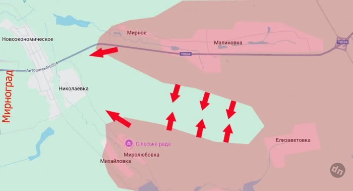 Дело в том, что после освобождения Малиновки, Миролюбовки и села Мирное к востоку от Мирнограда сформировался огневой мешок для ВСУ. Это территориальная полоса от северных предместий Елизаветовки до упомянутого Мирного. Узость полосы позволяет простреливать любые позиции, находящиеся там.