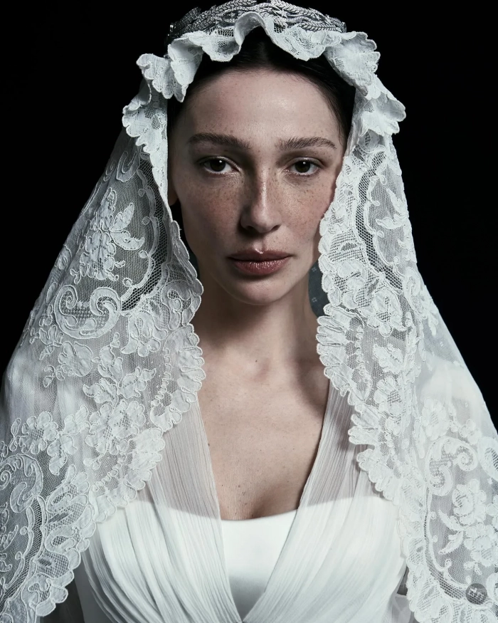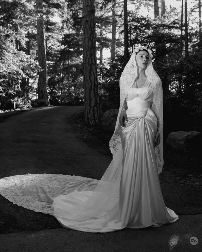 https://t.me/spletnik2006/31897Чуть позже сама Настя опубликовала в инстаграме* серию свадебных фото, впервые показав образ невесты. Для церемонии она выбрала кремовое корсетное платье и оригинальную кружевную фату.