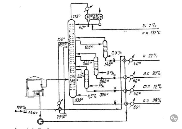 Схема нефтяной ректификационной колонны из учебника И. Л. Гуревича