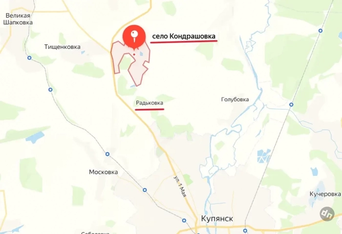 А всего за неделю наши военнослужащие освободили 13 населенных пунктов. Расположенное недалеко от Кондрашовки село Радьковка перешло под контроль российской армии 23 мая. Освобождение этих двух населенных пунктов открывает нашим подразделениям с севера прямую дорогу на Купянск. От Радьковки до окраин города остался примерно один километр.