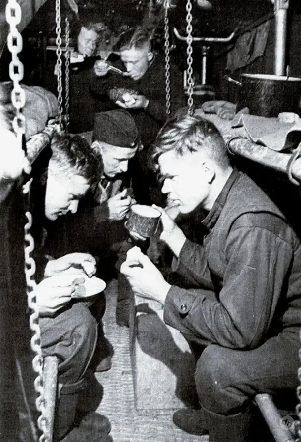В целом питание подводников было полноценным и калорийным, а его разнообразность зависела от умений кока. В походы подводники получали сыр, копченую колбасу, масло, икру, ветчину, бекон, мясные и рыбные консервы, сухофрукты и многое другое. Калорийность суточного пайка составляла 4200–4500 калорий, что в целом более чем достаточно.