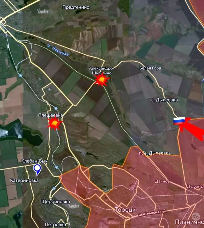 Вражеские мониторинговые каналы сообщают о мощных взрывах в оккупированной Константиновке. Одновременно штурмовики ВС РФ продавили оборону противника от Дружбы севернее Торецка в районе Песчаной балки и продвинулись на три километра к трассе О-05-19, которая выходит на Константиновку. Обе стороны очень активно применяют ударные дроны.