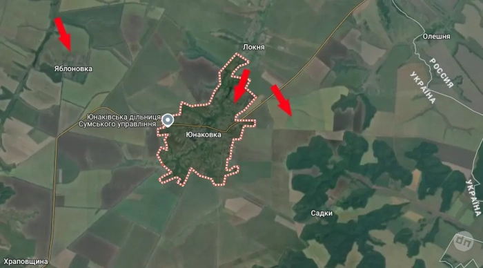 Российские войска вышли южнее дороги Н-07, ведущей на Сумы, окончательно лишив Юнаковку статуса транспортно-логистического узла для ВСУ