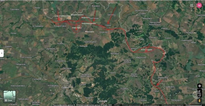 Между тем, этот участок Сумского направления не единственный, где трещит фронт ВСУ. Стало известно о прорыве российских подразделений севернее - в районе Александрии. В результате бойцы Вооружённых сил Российской Федерации (ВС РФ) активно продвигаются к Мирополью.