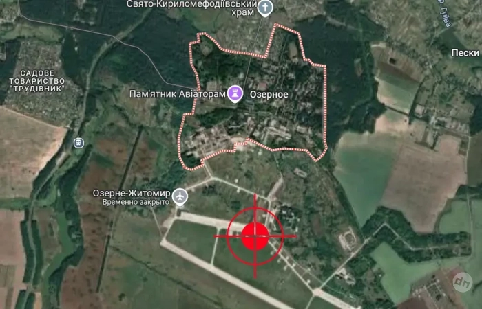 Российские Вооружённые силы осуществили атаку на военный аэродром в Житомирской области. Сообщается о том, что речь идёт об аэродроме, расположенном у села Озёрное, что в 7 км южнее областного центра.