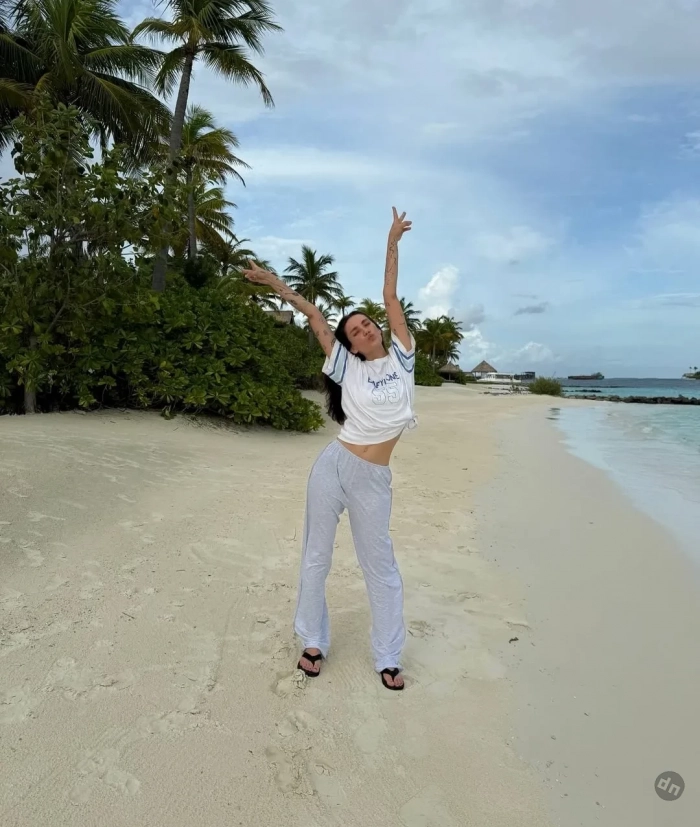 В своих соцсетях Карина поделилась фотографиями и видео с отдыха. На них можно увидеть её саму, позирующую в купальнике или прогуливающуюся по пляжу вместе с дочерью, а также Фёдора, катающего дочь на велосипеде и показывающего ей местные красоты.