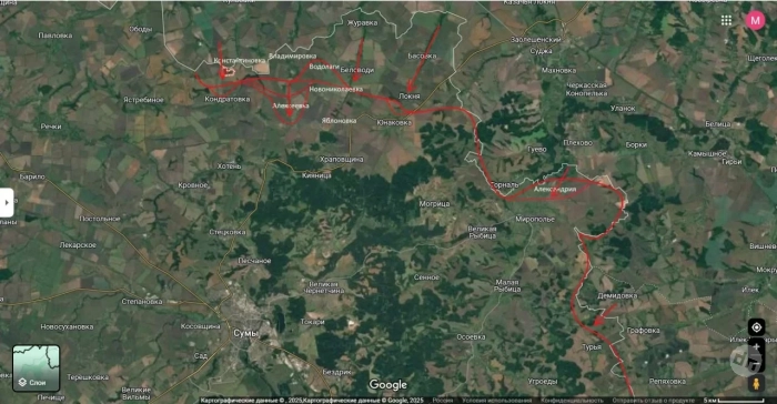 «Наше наступление на Сумы ускоряется. Противнику всё труднее сдерживать продвижение российских сил», - пояснил блогер.