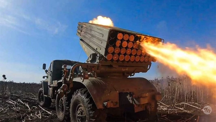Бойцы 61-й отдельной бригады морской пехоты Северного флота, входящей в состав группировки "Днепр", успешно использовали реактивные системы залпового огня "Град" для уничтожения временных пунктов размещения штурмовых подразделений ВСУ, а также объекта управления разведывательными беспилотными летательными аппаратами на правом берегу Днепра в Херсонской области.