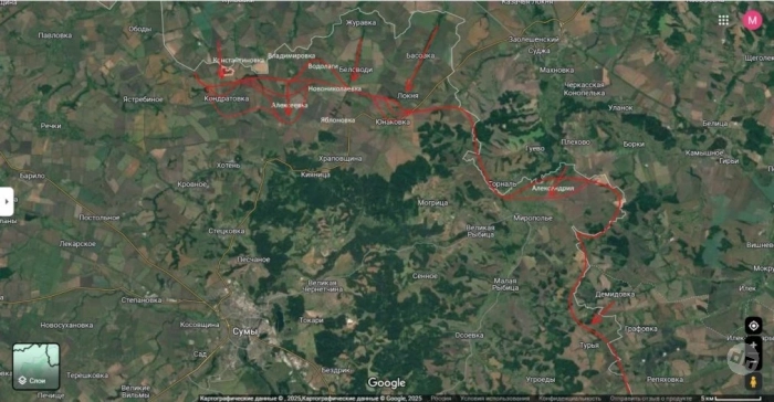 За прошедшие двое суток на Сумском направлении российские войска взяли под полный контроль еще два села - Алексеевку и Кондратьевку. Таким образом до стратегически важного пгт Хотень нам осталось пройти около 4 км, а до областного центра Сум расстояние сократилось до менее 18 км.