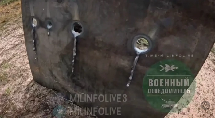 Металлический лист после воздействия лазера. Кадр из видео от ОСпН «Кочевник» / Telegram «Военный осведомитель»