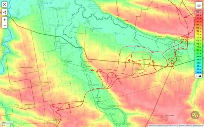Также наши части продолжали вчера зачищать посадки западнее Отрадного и постепенно идут к восточным окраинам н.п. Комар. С учетом того, что Комар находится в долине и перепад высот там с восточных окраин очень большой (более 20 метров и село с них видно как на ладони), с выходом наших штурмовиков на эти самые восточные окраины гарнизон противника в селе будет приговорен, констатирует Подоляка.