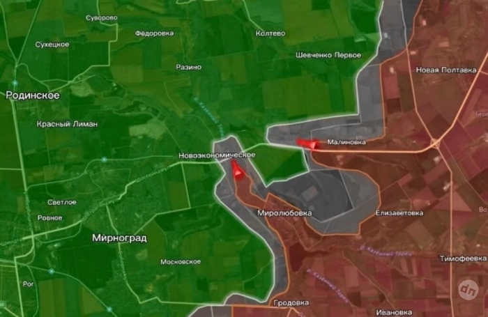 На Покровско направлении российские войска давят с опорой на Шевченко Первое в направлении Коптево. ВС РФ продвинулись по западному берегу р. Казенный Торец к южной окраине Новоэкономического, имеются тактические успехи по линии Малиновка-Елизаветовка, продолжается зачистка Малиновки. Отмечаются интенсивные боестолкновения в Новониколаевке и Новосергеевке, а также встречные бои в районе Муравки и севернее Котляровки.