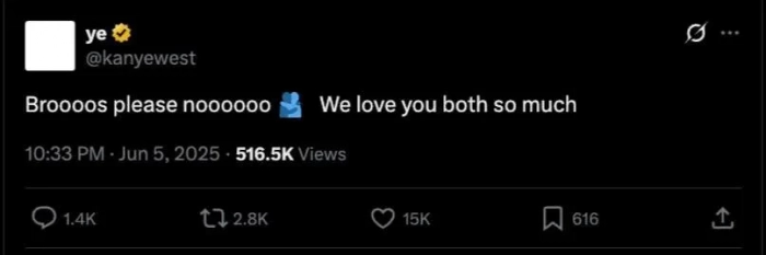 "Братва, пожалуйста, не ссорьтесь. Мы очень любим вас обоих", — написал Канье.