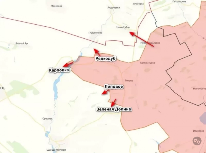 Наступление российских войск на Красно-Лиманском направлении продолжается, несмотря на попытки противника его остановить. После взятия Редкодуба и входа в Карповку, наши начали продвижение и в сторону Зеленой Долины, причем весьма успешно. Как отметил военный эксперт, подполковник НМ ЛНР в отставке Андрей Марочко, наиболее активные бои идут в районе Липового и Зеленой Долины.