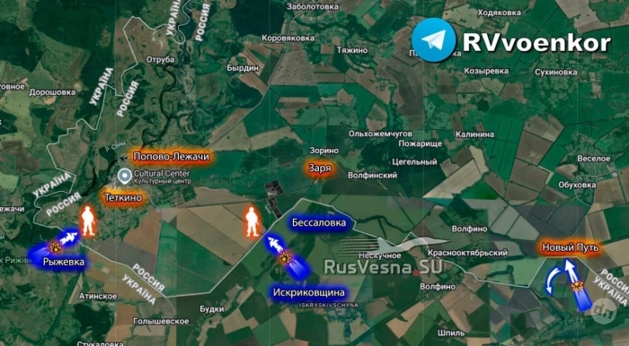 На границе Сумской и Курской областей тяжёлая ситуация в районе Тёткино. Противник практически непрерывно атакует. Появляются сообщения, что ВСУ при помощи дронов и артиллерии фактически контролируют дороги из Тёткино, а наши десантники оказались в оперативном окружении, но информация нуждается в подтверждении. В Сумской обл продолжаются упорные бои за Юнаковку. С мест сообщают, что ВС РФ фактически освободили это село и приблизились к Малой Корчаковке, - пишет Олег Царёв.