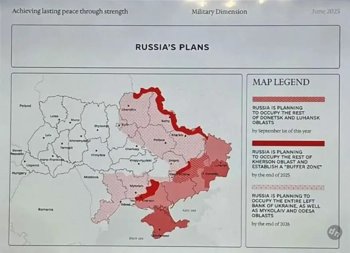 Как уже сообщало «Военное обозрение», замглавы офиса Зеленского по фамилии Палиса, представил карту с титрами на английском языке, где «цветными фломастерами» пометил «планы России по продолжению боевых действий». По утверждению Палисы, Россия «к концу 2026 года собирается захватить» всю левобережную Украину, а заодно Николаевскую и Одесскую области, плюс Киев.