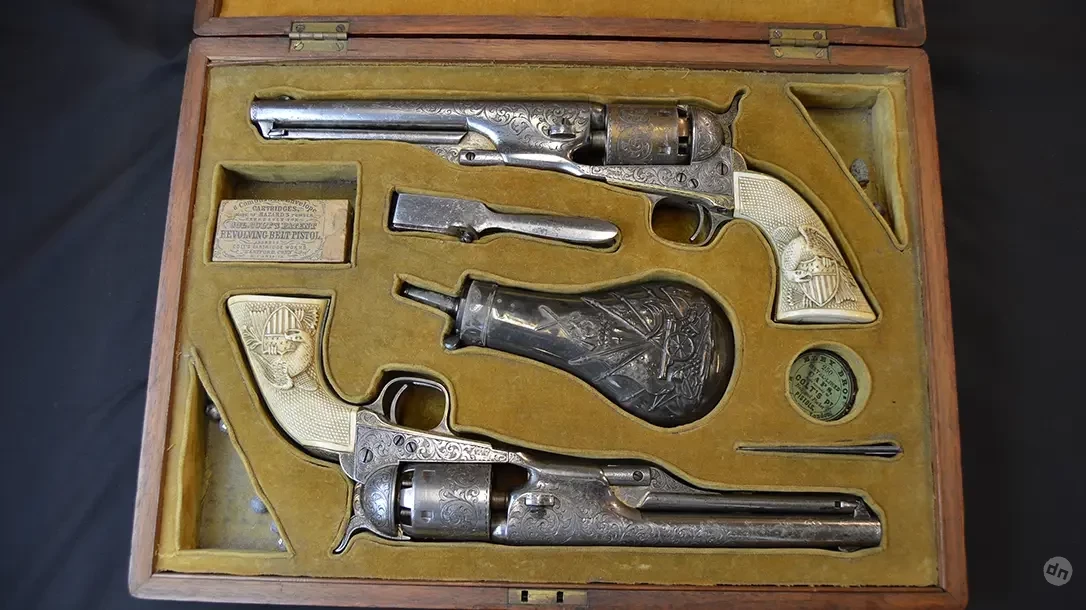 «Револьверы Кастера» в футляре и со всеми принадлежностями. Музей истории Фрейзера в Луисвилле, штат Кентукки.