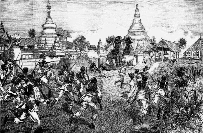 А то, что Франция намерена со всеми удобствами расположиться во Вьетнаме, было уже видно без очков. Французские миссионеры окучивали местных королей по полной программе уже в конце XVIII века, причём их активность даже вызвала резню христиан, после того как потомки Астерикса с Обеликсом прервались на Наполеоновские войны. А что у нас там лежит между Индией и Вьетнамом? Бинго — Бирма! В общем, причины войны были примерно такие же, что потянули англичан в Афганистан — желание превентивно обезопасить «свою прелесть». Но, повод! Право, за такое было стыдно даже британским парламентариям, которые свой стыд держали в очень хорошо запирающемся сейфе. Дело было так...