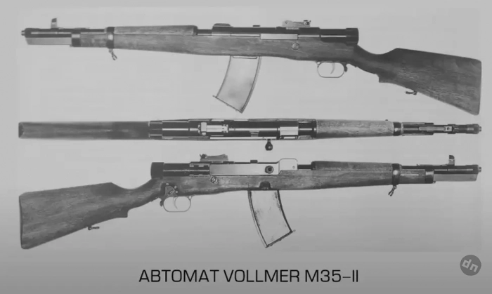 Параллельно с выбором патрона под такую хотелку конструкторы Vollmer, Walther и Mauser занимались разработкой нового оружия. Работу по созданию оружия под промежуточный патрон Фридрих Киттель и Генрих Фолльмер начали и замутили автоматический карабин M35 под патрон Geco 7,75х40 мм (существует еще и в вариантах х39,5 или х40.5).