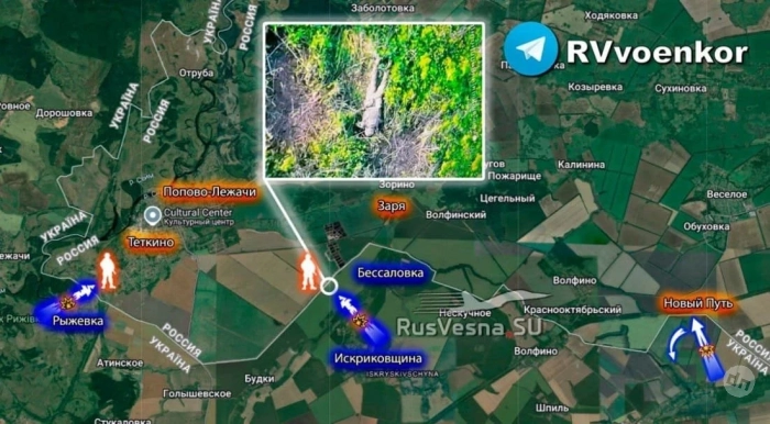 "Противник продолжает попытки прорваться к нашим позициям. Враг пытается от Рыжёвки через кладбище и у очистных зайти малыми группами по 5 человек. Мы укрепили рубежи, ВДВ, морпехи, мотострелки провели ротацию, подвезли резервы, бьёмся за Тёткино".