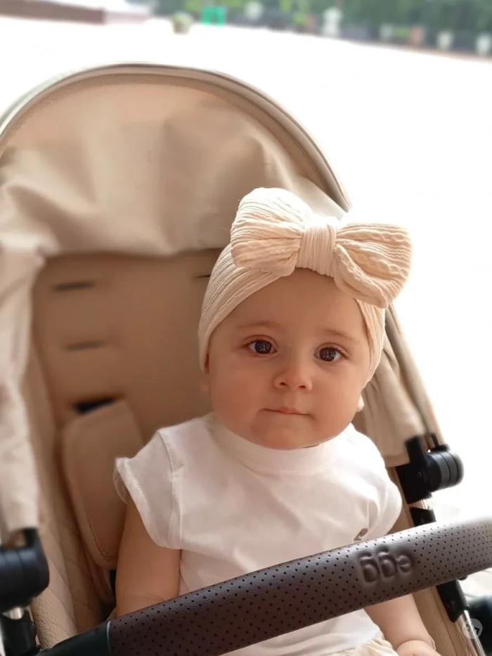 Елизавета Арзамасова опубликовала в соцсетях новые фото 10-месячной дочери Лии от супруга Ильи Авербуха. На снимках младший ребёнок знаменитостей позирует в коляске в розовом костюме и белой футболке.