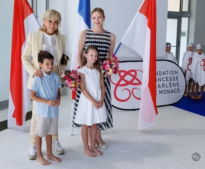 Княгиня Шарлен и первая леди Франции Брижит Макрон, которая вместе с супругом Эммануэлем находится в Монако с официальным визитом, посетили мероприятие фонда Шарлен, приуроченное ко Дню безопасности на воде.