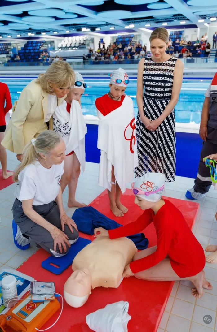 Княгиня Шарлен и Брижит МакронКнягиня Шарлен и Брижит МакронКнягиня Шарлен и Брижит МакронКнягиня ШарленБрижит Макрон и Княгиня ШарленБрижит Макрон и княгиня ШарленБрижит Макрон и Княгиня ШарленПервые леди встретились с юными спортсменами в бассейне на стадионе "Луи II", где они приняли участие в практических мастер-классах по сердечно-лёгочной реанимации, водных эстафетах, курсах безопасности. День безопасности на воде — знаковое событие благотворительного фонда княгини Монако Шарлен, который на протяжении десяти лет занимается профилактикой утоплений и повышением осведомленности молодёжи о безопасности на воде.