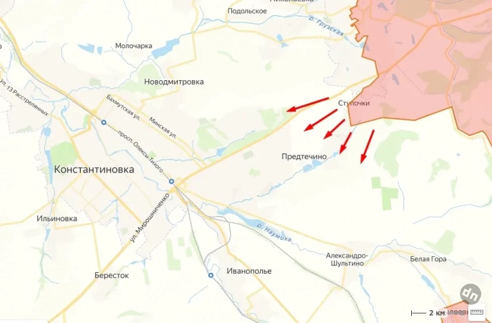 Сейчас перед российскими подразделениями стоит задача взять Предтечино, что позволит выйти на восточные подступы к Константиновке.
