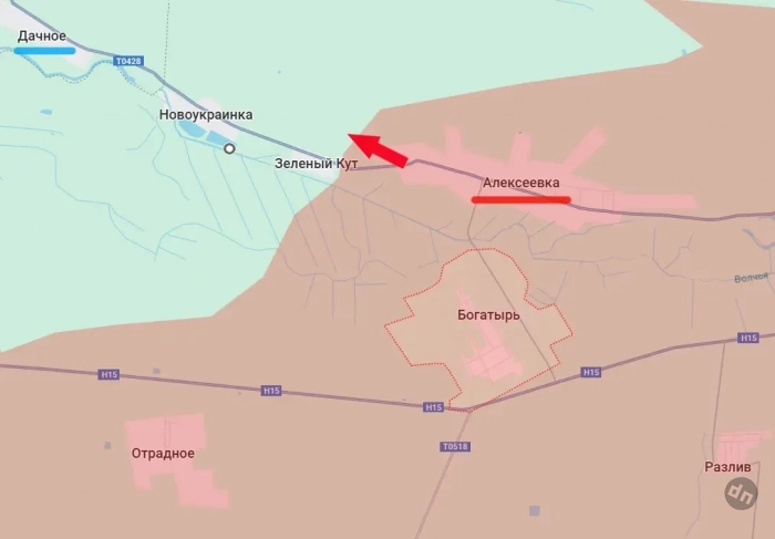 При учёте того, что армия России уже стоит на окраине Зелёного Кута, и что там, как сообщается с мест ведения боевых действий, враг не успел оборудовать сколько-нибудь серьёзных укреплений, освобождение этого села – дело ближайшего времени. От Зелёного Кута до села Дачное, что на территории Днепропетровщины, около 3 км. И если противник не предпримет каких-то сверхусилий, то Дачное может стать первым населённым пунктом Днепропетровщины, который перейдёт под контроль армии России. Не хочется в этом плане забегать вперёд, но оперативно-тактическая обстановка говорит именно о такой возможности.