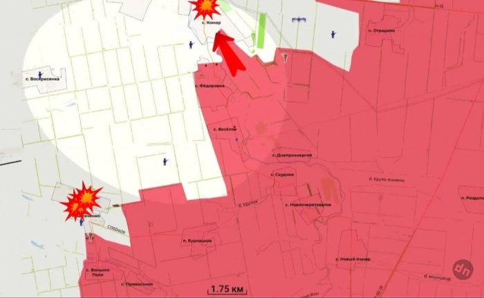 На Покровском фронте ВС РФ стараются расширить и углубить прорыв в Днепропетровскую область. В Кремле не исключили, что здесь начинает формироваться санитарная зона вдоль российских границ. Упорные бои продолжаются в Новосергеевке и Новониколаевке. Между Шевченко и Песчаным ВС РФ зачистили ряд позиций врага и выровняли фронт. На восточном фланге тяжёлые бои по охвату Новоэкономического.