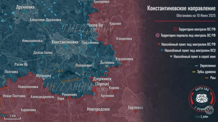На Константиновском направлении ВС России развивают наступление к Клебан-Быкскому водохранилищу с запада и востока. Идёт штурм Яблоновки, Александро-Калиново.