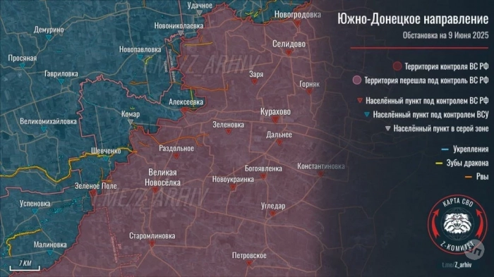 ВС РФ с тяжёлыми боями взяли под контроль большую часть н.п. Коптево на Покровском направлении: свежие данные о боях в зоне СВО на 10.06.2025