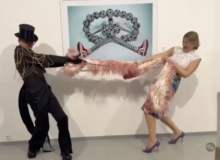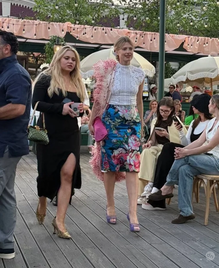 Софья Эрнст вышла в свет в боа с перьями и кружевном топе