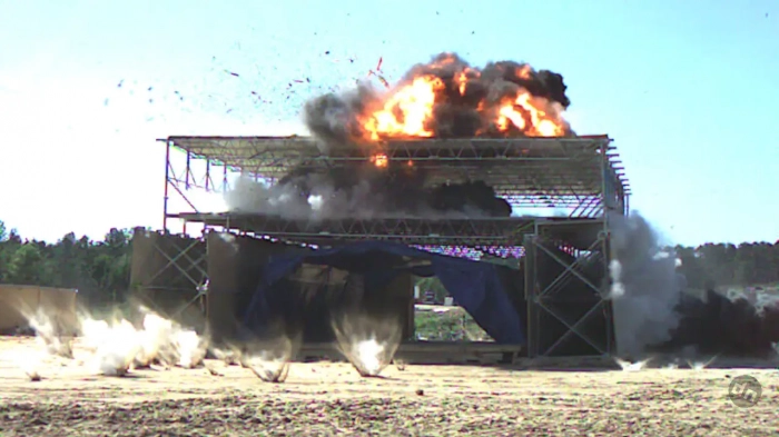 Снайперы обстреливали модульное сооружение и пытались поразить цели внутри, но не преуспели в этом. Затем имела место имитация миномётного обстрела. Две миномётные мины подорвали на крыше укрытия и рядом с ним, на условной позиции миномётчиков. Следующую атаку провел условный смертник, подорвавшийся у входа в опорный пункт. Затем за пределами сооружения сработало самодельное взрывное устройство на автомобиле.