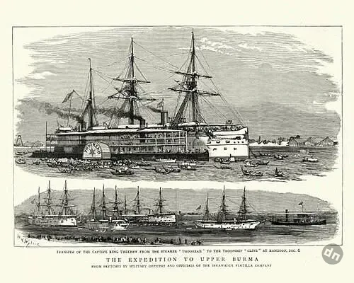 В общем, случился дипломатический скандал, англичане заставили Францию отозвать Хааса (после поражения во франко-прусской войне французы стали сильно сговорчивей, лет за двадцать до того могли и послать куда подальше). В Уайт-Холле стало ясно — с Бирмой надо что-то решать! И тогда 22 октября 1885 года британцы выкатили Тибо Мину ультиматум — принять нового британского резидента в Мандалае с собственным военным кораблём и 1000 солдат охраны, а любые судебные иски и штрафы отложить до его прибытия. И вообще, чтобы все внешние сношения «империя» (кавычки в данном случае уже будут к месту) вела только через Великобританию. Ну и режим особого благоприятствования в торговле с Китаем островитяне добавить в ультиматум не забыли — торговая нация как-никак...