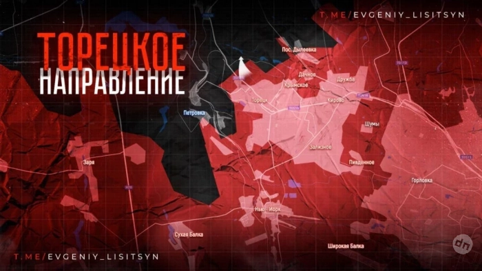 На Северском направлении ВС РФ продвинулись западнее Белогоровского мелового карьера и севернее Белогоровки, ведут штурмовые действия южнее Выемки. ВС РФ с опорой на Дылеевку давят в направлении Белой горы и севернее Торецка в направлении Клебан-Бык, имеются тактические успехи западнее Озаряновки. Также российские войска продвинулись южнее Яблоневки, ведут штурмовые действия в центральной части упомянутого населенного пункта и на южной окраине Александро-Калиново.