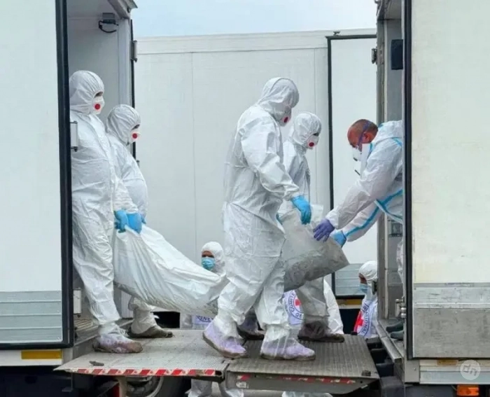 Передача тел, о которой сообщалось ранее, продолжится все эти дни, уточнил Мединский. Украинская сторона действительно перегружает мешки с телами в собственные рефрижераторы, которые пригнала к границе. Ранее такой информации не было. Единственное, пока непонятно, речь идет только о первой партии в 1212 тел или о всех 6 тысячах, если работы растянутся на несколько дней.