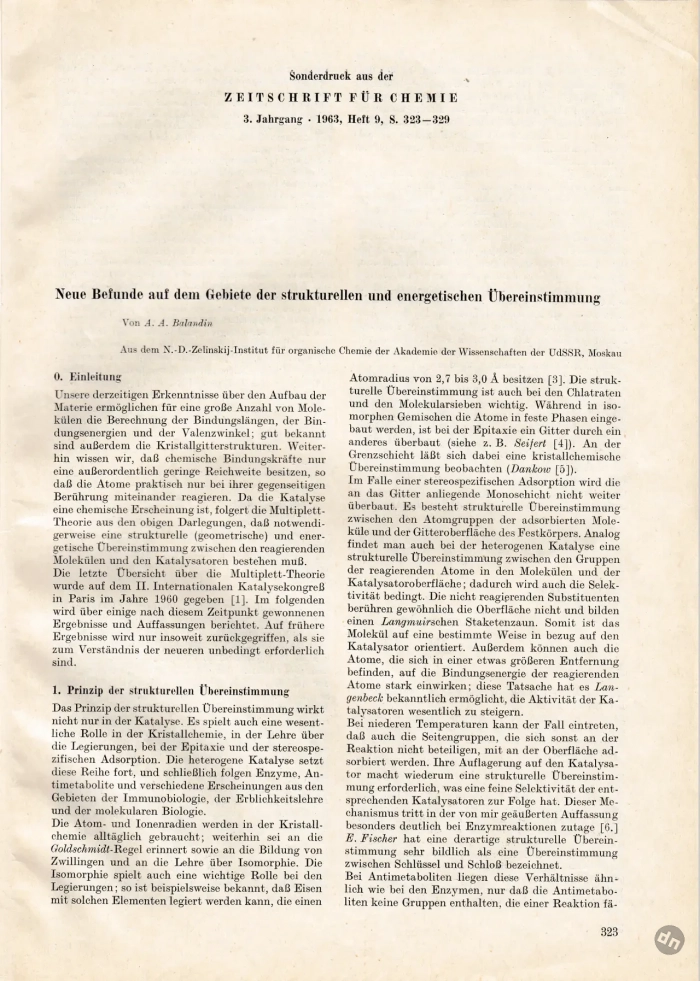Оттиск статьи Баландина А.А. «Новые данные из области структурного и энергетического соответствия». КККМ ВФ 8765/39