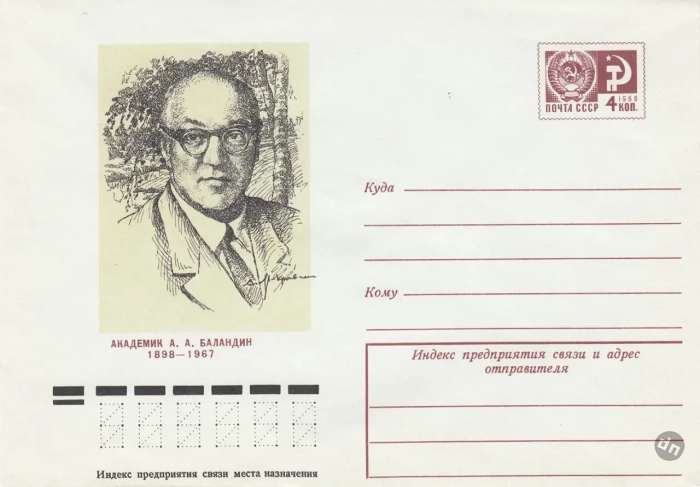 Конверт почтовый с портретом академика Баландина А.А.КККМ ВФ 8765/6.