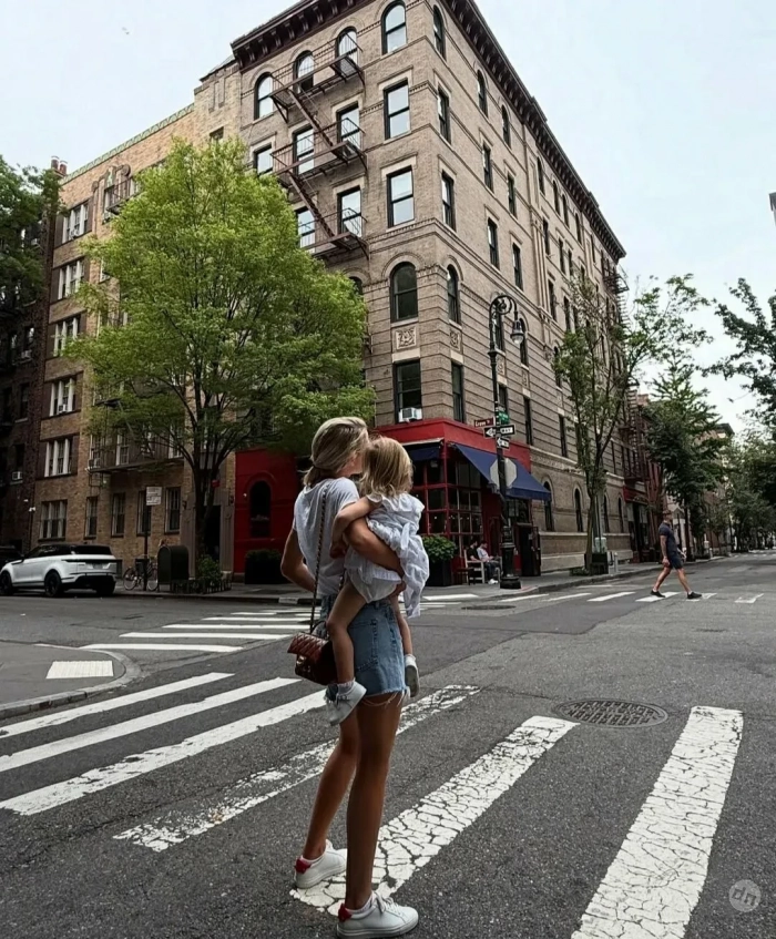 Снимки были сделаны во время поездки в Нью-Йорк. На них можно увидеть, как маленькая Афина любуется городским пейзажем, гуляет с мамой по парку и смотрит на знаменитый дом из сериала “Друзья”, который находится в одном из самых дорогих районов Манхеттена, Гринвич Вилладж.